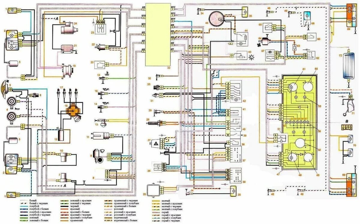Разобраться во всем хитросплетении элементов электропроводки, найти выключатель сигнализатора прикрытия воздушной или реле очистителей ветрового стекла и фар поможет детальная схема проводки ВАЗ Указатели поворотов, расположенные на боковой стороне передних крыльев.