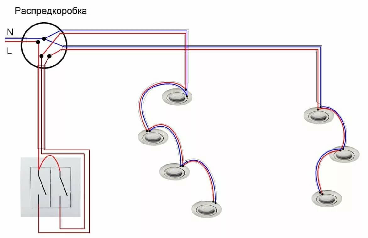 Но сначала нужно правильно выбрать распаячную коробку. Первая схема для подключения двойного выключателя на две отдельные лампочки актуальна для системы TN-C, которая до сих пор встречается в старых домах. Открытая установка Прелесть таких двухклавишных выключателей в том, что для их подключения не обязательно нужно штробить стену, чтобы спрятать начинку устройства она помещена в сам корпус , а провода можно спрятать в кабель-канал. Меры предосторожности Какие меры следует предпринимать, занимаясь установкой света в доме?