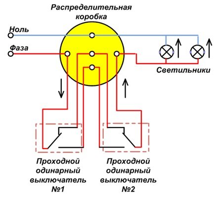 Схема проходного выключателя. Подключение проходного выключателя с двух мест