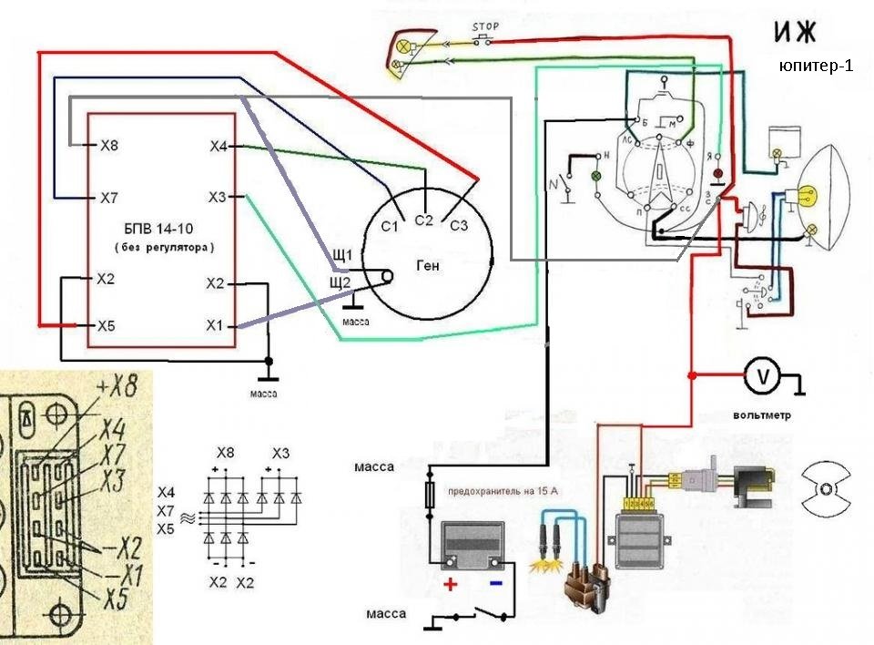 Штатная модель проводки ИЖ планета 5 предусматривает установку предохранителя на плюсовом проводе АКБ. Коммутатор электронный мотоциклов ИЖ 7.