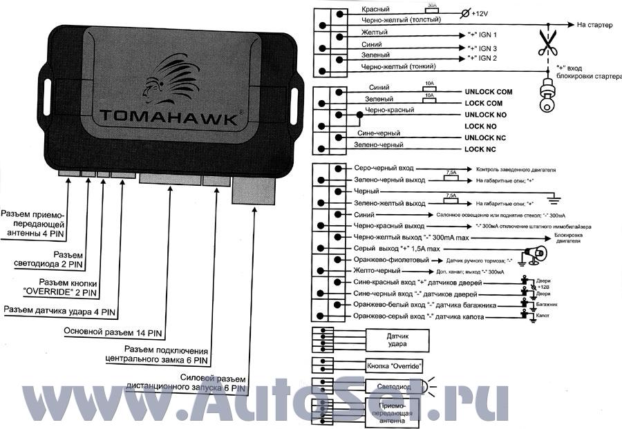 Кстати, к сигнализации Tomahawk их подключают не напрямую, а через блокирующие диоды. Воспользуйтесь таблицей программирования для выбора одной из них. Светодиодный индикатор в этом режиме горит постоянно. Аварийное снятие с охраны: Включите зажигание двигатель не должен быть заведен Нажмите кнопку «Override» 4 раза Выключите зажигание Парковочные огни вспыхнут 2 раза, сирена издаст 2 «ЧИРПа», подтверждая активацию функции.