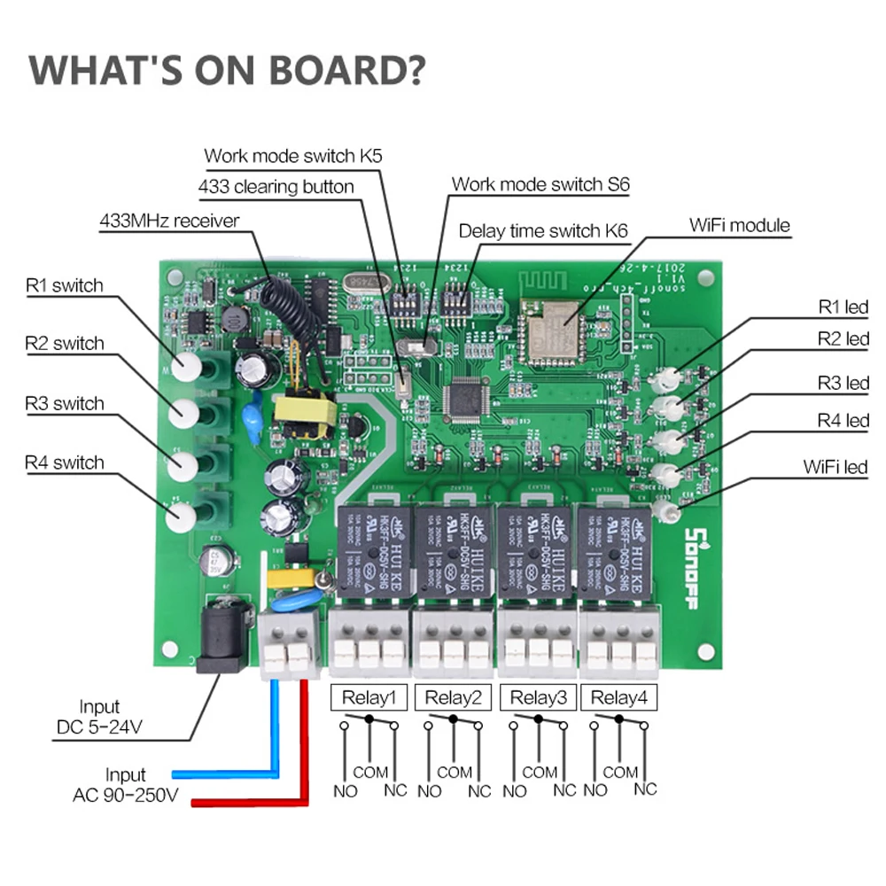 Sonoff 4CH Pro WiFI выключатель с доп. функциями
