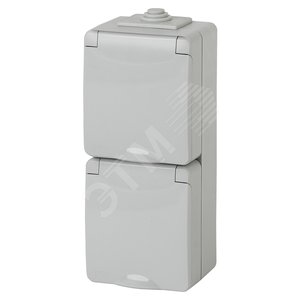 Розетка 2х2P+E верт. IP65, шторки, 16A-250В, ОУ, Эра Эксперт, серый, 11-2608-03 (Б0036003)