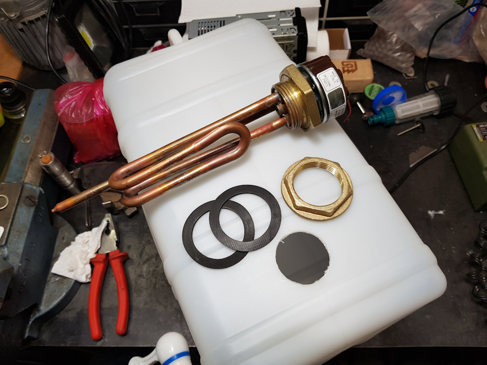 Решил сделать рукомойник с подогревом, очень бодрит мыть руки холодной водой, на рынке купил ТЭН 1.2 кВт, какой то Итальянский, и короткий, подошёл в купленный бак, врезал, все работает, воду греет, но есть один вопрос про его установку, датчик терморегулятора ( прямой штырь ) должен быть в нижней или верхней точке, или нет разницы?
