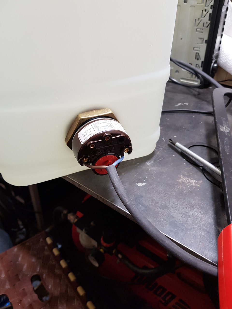 я сделал умывальник из подобного бака и котла подогрева с циркуляцией типа луньфей. термодатчик только поменял на 40ка градусный.
