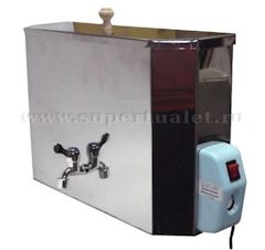 «Мойдодыр». Они довольно компактные и их легко транспортировать благодаря удобному корпусу, который без проблем разбирается. Установка тоже не займёт много сил и энергии. Тумбы, как правило, изготавливаются из прочного металла. Раковина и ёмкость для воды могут производиться как из пластика, так и из металла. Это зависит от модели. В основном установлены нагреватели воды мощностью в 1,25 кВт. Они быстро нагревают воду. Стандартная комплектация выглядит следующим образом: вес — 15 кг, объём ёмкости для хранения воды — от 15 до 30 л, нагреватель отключается при достижении температуры в 60˚С, цена бывает разная — в пределах 2 тысяч рублей.- «Акватекс». Эти конструкции делают на заводе «Электромаш». Они имеют более усовершенствованную конструкцию, чем обычные «Мойдодыры». Внутри ёмкость для хранения воды покрыта специальным антикоррозионным веществом. Преимуществом такого покрытия также является и экологичность использования, поскольку такая эмаль используется для производства игрушек для детей, а также посуды.