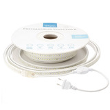 То есть, если вам необходимо проложить подсветку на большом протяженном участке, просто разматываете ее с бобины. С одного конца подключаете вилку, с проводом имеющим диодный мост, втыкаете в розетку и на этом все. Наслаждаетесь освещением.