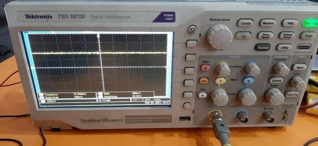 Как видно на осциллографе, конечный результат, т.е. полученное среднеквадратичное значение, выражается в милливольтах, что приблизительно равно значениям, полученным при моделировании.
